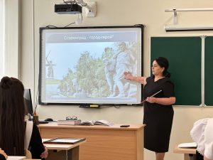 Уроки Мужества начались  с того, что совсем недавно на классных часах говорили о годовщине прорыва блокады Ленинграда, а сегодня новая дата: 80-я годовщина Сталинградской битвы. В течение Урока мужества учащиеся узнали о героизме и мужестве наших солдат, о командном составе, о подвигах медсестёр, познакомились с историческими памятниками той великой битвы: Мамаевым курганом, домом Павлова, музеем-панорамой «Сталинградская битва», посмотрели хронику Сталинградской битвы.